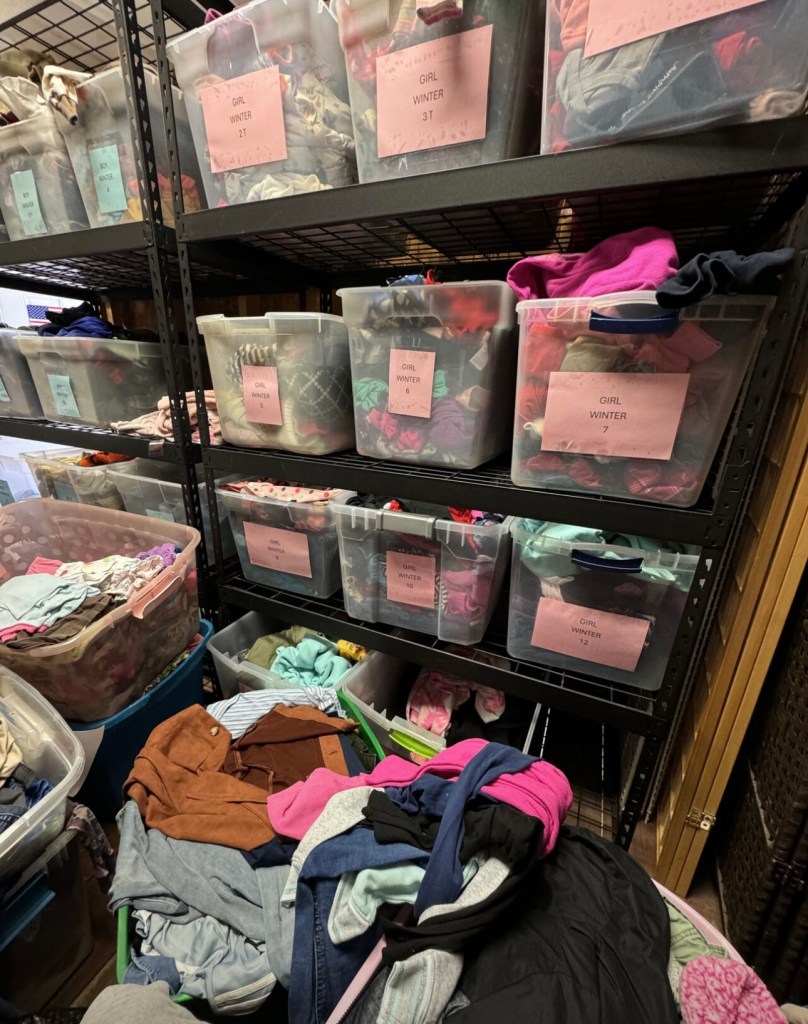 Here we organized a store’s local donation closet to get them ready for their drop!